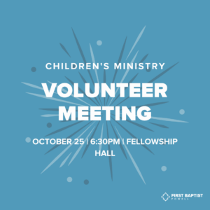 Children’s Ministry Volunteer Quarterly Meeting October 25th
